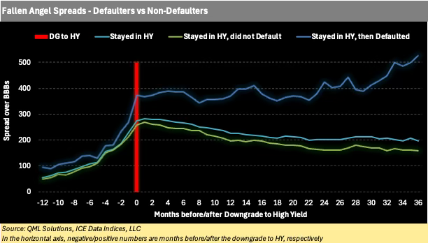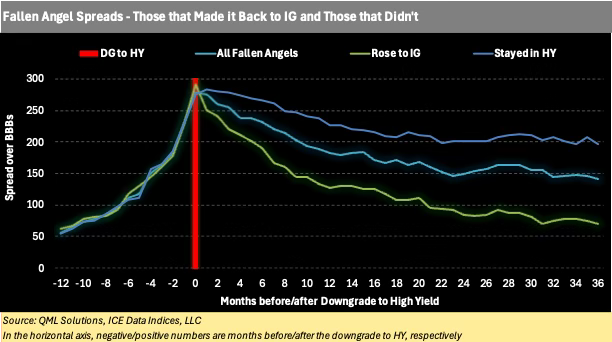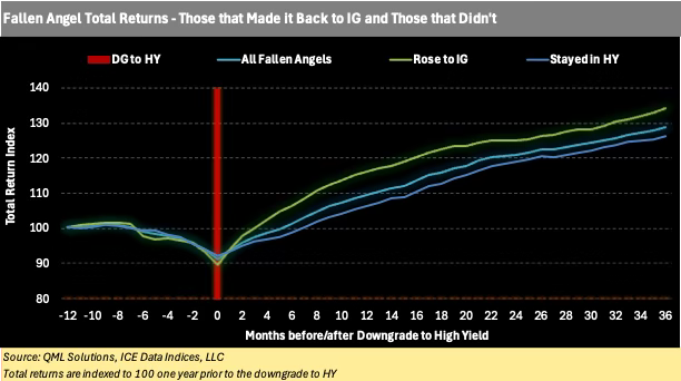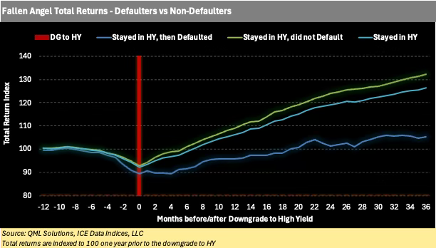Once fallen angel bonds enter the high-yield universe, spreads and returns diverge sharply as fundamentals reassert themselves. Losses incurred ahead of downgrade are typically recovered post-downgrade, but only for issuers whose credit profiles stabilize.