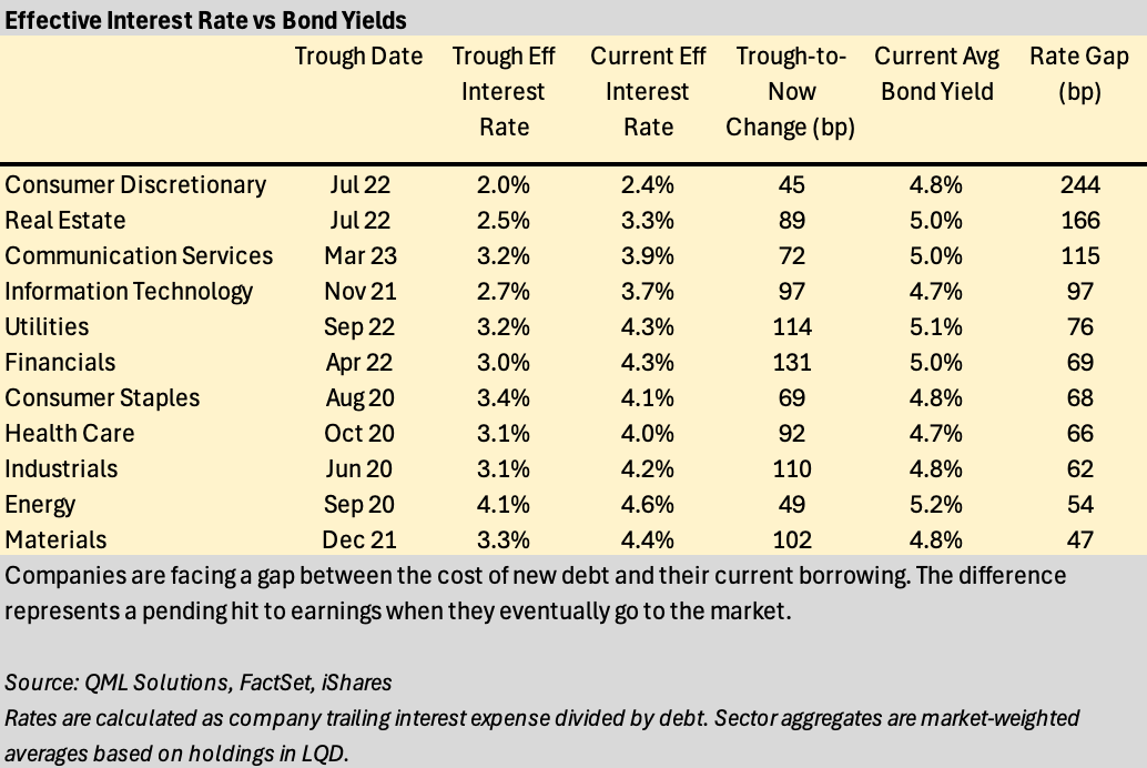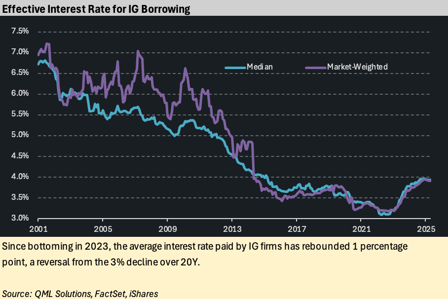 The effective interest rate companies pay on their debt has jumped nearly 100 bp from its 2023 low, erasing a third of its decades-long decline.